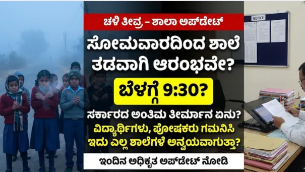 ರಾಜ್ಯದಲ್ಲಿ ತೀವ್ರ ಚಳಿ ಹಿನ್ನೆಲೆಯಲ್ಲಿ ಶಾಲಾ ಸಮಯ ಬದಲಾವಣೆ ಕುರಿತಾಗಿ ಪೋಷಕರು ಮತ್ತು ವಿದ್ಯಾರ್ಥಿಗಳಲ್ಲಿ ಗೊಂದಲ ಹೆಚ್ಚಾಗಿದೆ. ಮಕ್ಕಳ ಹಿತದೃಷ್ಟಿಯಿಂದ ಕರ್ನಾಟಕ ರಾಜ್ಯ ಮಕ್ಕಳ ಹಕ್ಕುಗಳ ರಕ್ಷಣಾ ಆಯೋಗ (KSCPCR) ಮಹತ್ವದ ಶಿಫಾರಸು ನೀಡಿದ ಬಳಿಕ, ಸೋಮವಾರ (ಡಿ.22) ಶಾಲೆಗಳು ಯಾವ ಸಮಯಕ್ಕೆ ಆರಂಭವಾಗುತ್ತವೆ? ಎಂಬ ಪ್ರಶ್ನೆ ಎಲ್ಲೆಡೆ ಕೇಳಿಬರುತ್ತಿದೆ. ಇಲ್ಲಿದೆ ಈ ಕ್ಷಣದವರೆಗೆ ಇರುವ ಲೆಟೆಸ್ಟ್ ಮತ್ತು ಸ್ಪಷ್ಟ ಮಾಹಿತಿ.